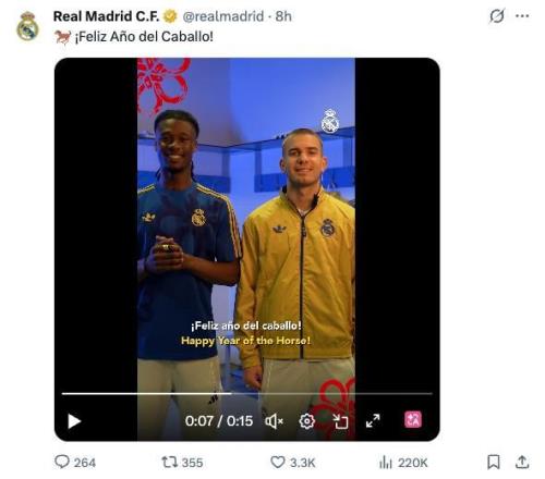 皇馬官媒配文表示:馬年快樂!