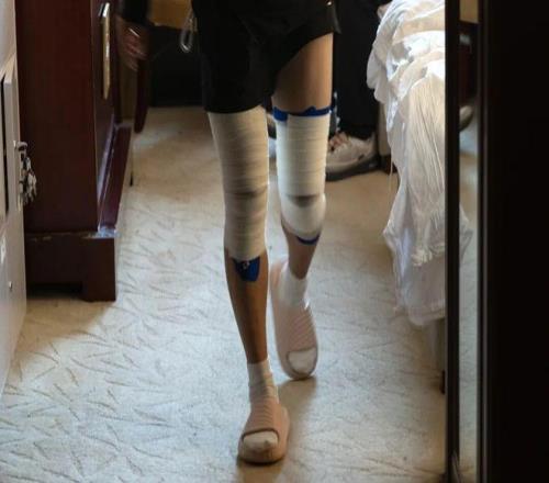 徐夢桃纏滿繃帶的雙腿/圖源:新華社