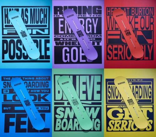 眼下,BURTON就用一款全新產品,嚐試給出自己的回答。2026年2月3日,BURTON正式推出From Burton To The World紀念款限定雪板係列,以品牌創始人Jake Burton Carpenter的初心與理念為設計靈感,將六句代表性經典語錄以加粗字體和高飽和度的明亮色彩呈現在雪板之上。
